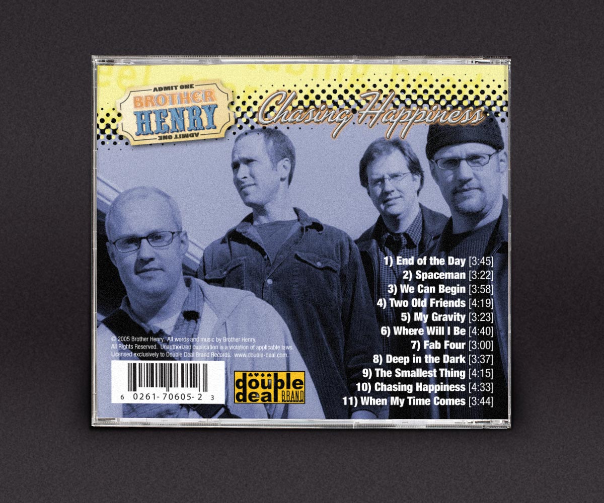 For Brother Henry’s second CD “Chasing Happiness” I carried forth the branding I created from the first CD and gave the packaging a nostalgic vintage feel. This time, Ben Folds even provided one of the band photographs.