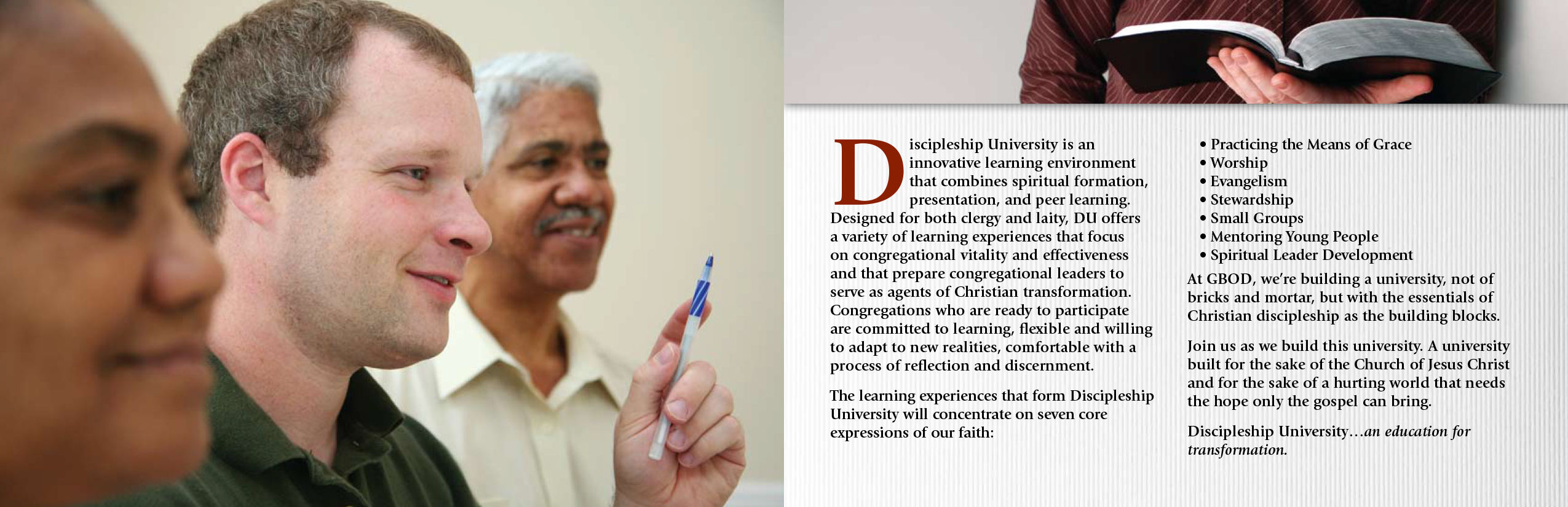 This was a saddle-stitched direct mail piece promoting a training program. It needed fresh, clean design that also alluded to traditionally conservative academia.